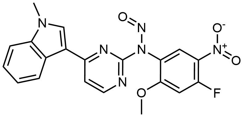 Synonyms: N-(4-fluoro-2-methoxy-5-nitrophenyl)-N-(4-(1-methyl-1H-indol-3-yl)pyrimidin-2-yl)nitrous amide