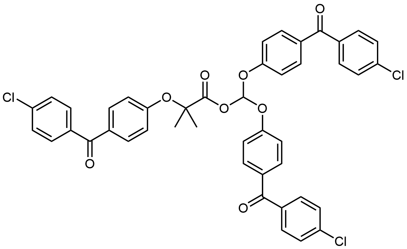 Synonyms: bis(4-(4-chlorobenzoyl)phenoxy)methyl 2-(4-(4-chlorobenzoyl)phenoxy)-2-methylpropanoate
