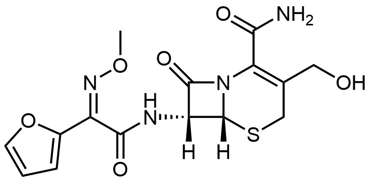 Synonyms: (6R,7R)-7-((Z)-2-(furan-2-yl)-2-(methoxyimino)acetamido)-3-(hydroxymethyl)-8-oxo-5-thia-1-azabicyclo[4.2.0]oct-2-ene-2-carboxamide