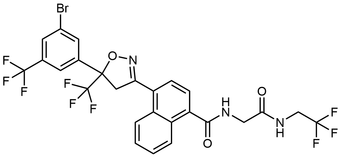 Synonyms: 4-(5-(3-bromo-5-(trifluoromethyl)phenyl)-5-(trifluoromethyl)-4,5-dihydroisoxazol-3-yl)-N-(2-oxo-2-((2,2,2-trifluoroethyl)amino)ethyl)-1-naphthamide