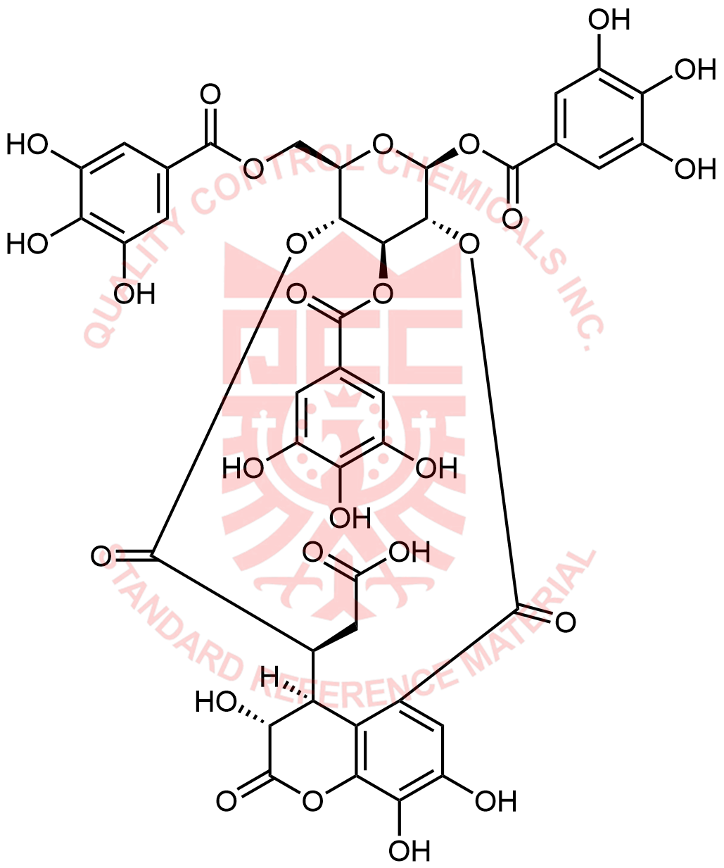 Synonyms: 2-((3R,3aS,4S,7R,8R,10S,11R,17S)-3,15,16-trihydroxy-2,5,13-trioxo-10,17-bis((3,4,5-trihydroxybenzoyl)oxy)-8-(((3,4,5-trihydroxybenzoyl)oxy)methyl)-2,3,3a,4,5,7,8,10,11,13-decahydro-7,11-methano[1,4,7]trioxacyclotridecino[11,10,9-de]chromen-4-yl)acetic acid