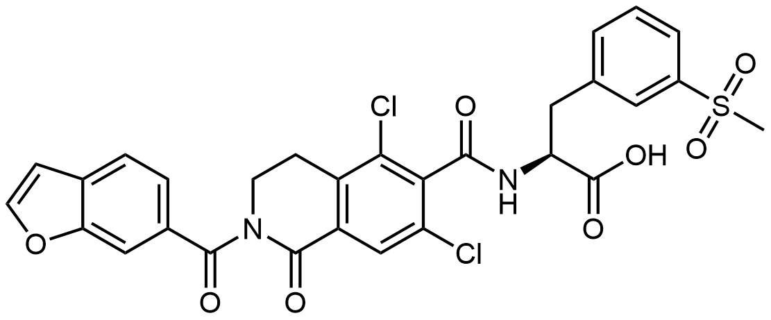 Synonyms: (S)-2-(2-(benzofuran-6-carbonyl)-5,7-dichloro-1-oxo-1,2,3,4-tetrahydroisoquinoline-6-carboxamido)-3-(3-(methylsulfonyl)phenyl)propanoic acid
