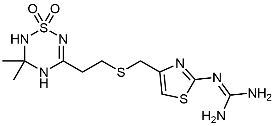 Synonyms: 2-(4-(((2-(3,3-dimethyl-1,1-dioxido-3,4-dihydro-2H-1,2,4,6-thiatriazin-5-yl)ethyl)thio)methyl)thiazol-2-yl)guanidine