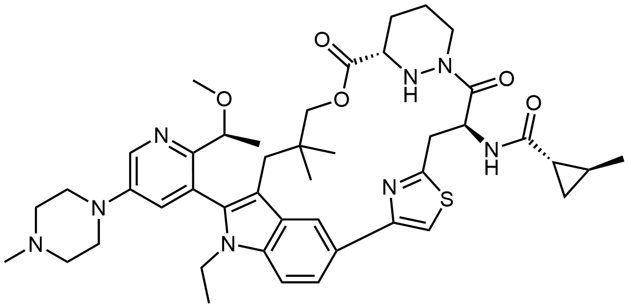 Synonyms: (1S,2S)-N-[(7S,13S)-21-ethyl-20-[2-[(1S)-1-methoxyethyl]-5-(4-methylpiperazin-1-yl)pyridin-3-yl]-17,17-dimethyl-8,14-dioxo-15-oxa-4-thia-9,21,27,28-tetrazapentacyclo[17.5.2.12,5.19,13.022,26]octacosa-1(25),2,5(28),19,22(26),23-hexaen-7-yl]-2-methylcyclopropane-1-carboxamide