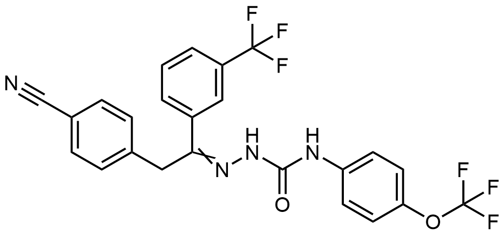 Synonyms: 2-(2-(4-cyanophenyl)-1-(3-(trifluoromethyl)phenyl)ethylidene)-N-(4-(trifluoromethoxy)phenyl)hydrazine-1-carboxamide