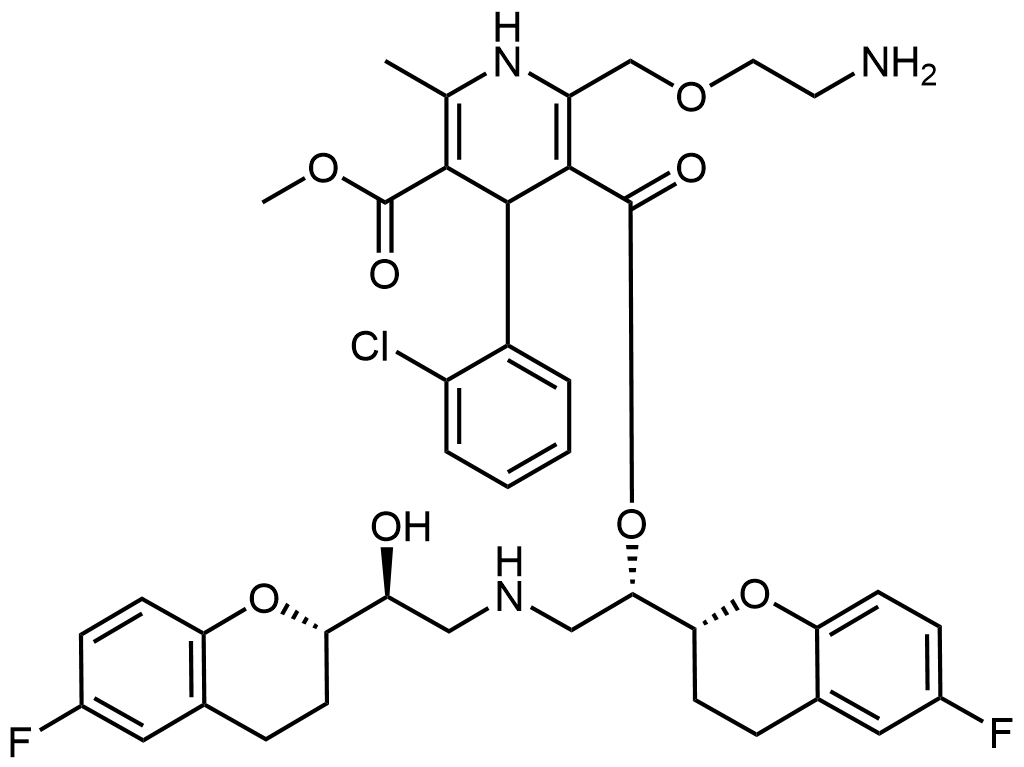 Synonyms: 3-((S)-1-((R)-6-fluorochroman-2-yl)-2-(((S)-2-((S)-6-fluorochroman-2-yl)-2-hydroxyethyl)amino)ethyl) 5-methyl 2-((2-aminoethoxy)methyl)-4-(2-chlorophenyl)-6-methyl-1,4-dihydropyridine-3,5-dicarboxylate