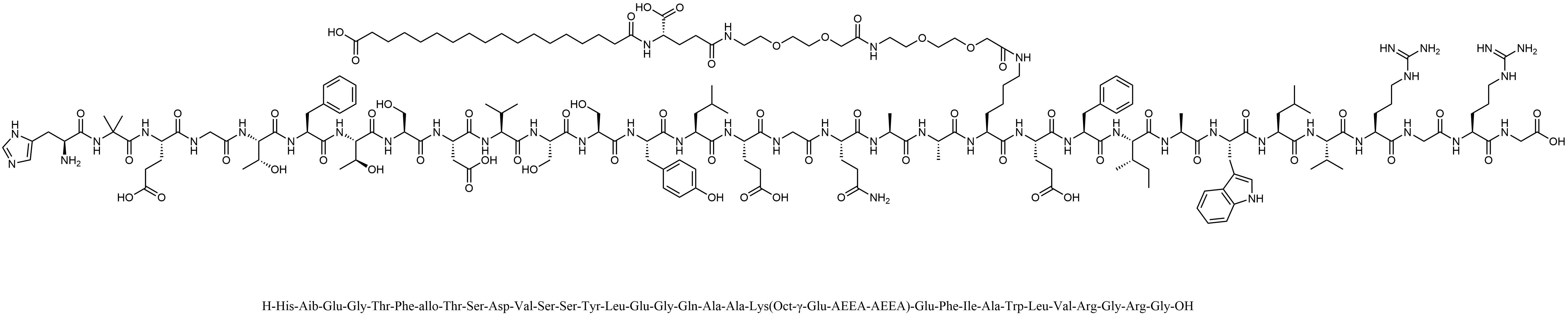 Synonyms: H-His-Aib-Glu-Gly-Thr-Phe-allo-Thr-Ser-Asp-Val-Ser-Ser-Tyr-Leu-Glu-Gly-Gln-Ala-Ala-Lys(Oct-γ-Glu-AEEA-AEEA)-Glu-Phe-Ile-Ala-Trp-Leu-Val-Arg-Gly-Arg-Gly-OH