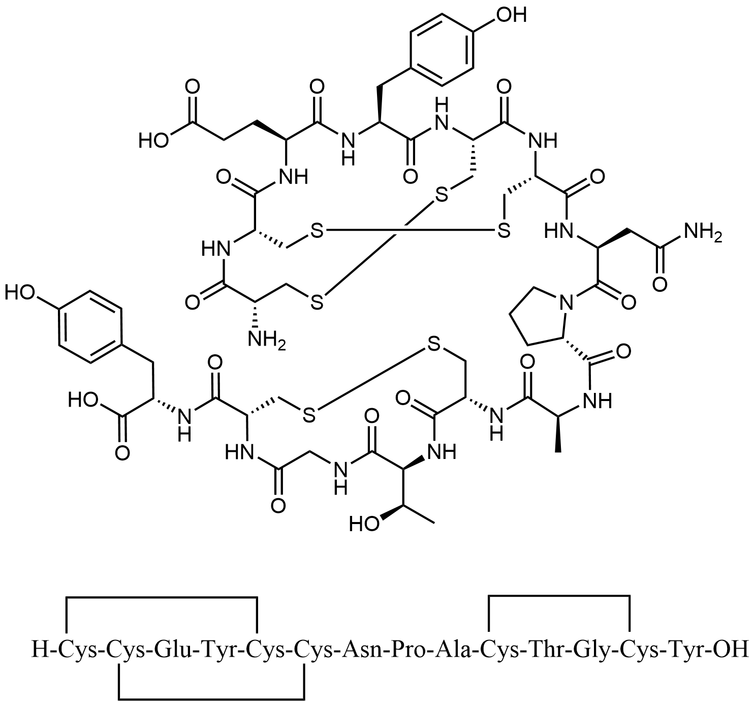 Synonyms: ((4R,10S,13R)-13-((S)-2-((S)-1-(((1R,4S,7S,10R,13R,20R)-13-amino-7-(2-carboxyethyl)-4-(4-hydroxybenzyl)-3,6,9,12,18-pentaoxo-15,16,22,23-tetrathia-2,5,8,11,19-pentaazabicyclo[8.7.7]tetracosane-20-carbonyl)-L-asparaginyl)pyrrolidine-2-carboxamido)propanamido)-10-((R)-1-hydroxyethyl)-6,9,12-trioxo-1,2-dithia-5,8,11-triazacyclotetradecane-4-carbonyl)-L-tyrosine