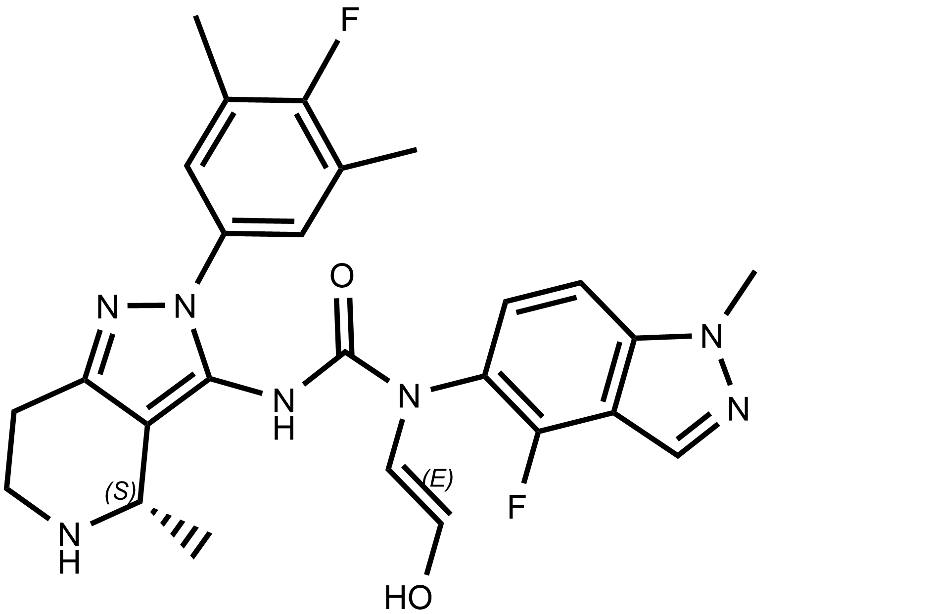 Synonyms: (S,E)-1-(4-fluoro-1-methyl-1H-indazol-5-yl)-3-(2-(4-fluoro-3,5-dimethylphenyl)-4-methyl-4,5,6,7-tetrahydro-2H-pyrazolo[4,3-c]pyridin-3-yl)-1-(2-hydroxyvinyl)urea
