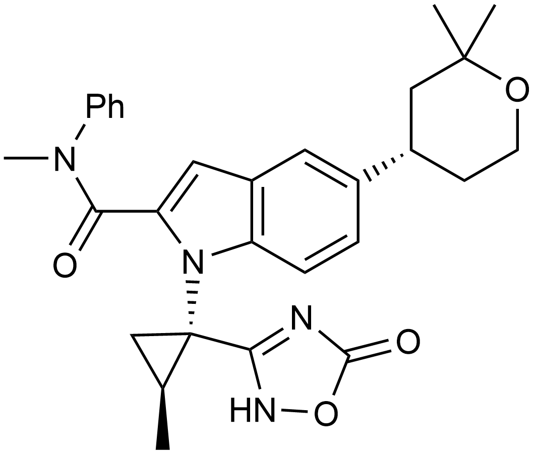 Synonyms: 5-((S)-2,2-dimethyltetrahydro-2H-pyran-4-yl)-N-methyl-1-((1S,2S)-2-methyl-1-(5-oxo-2,5-dihydro-1,2,4-oxadiazol-3-yl)cyclopropyl)-N-phenyl-1H-indole-2-carboxamide