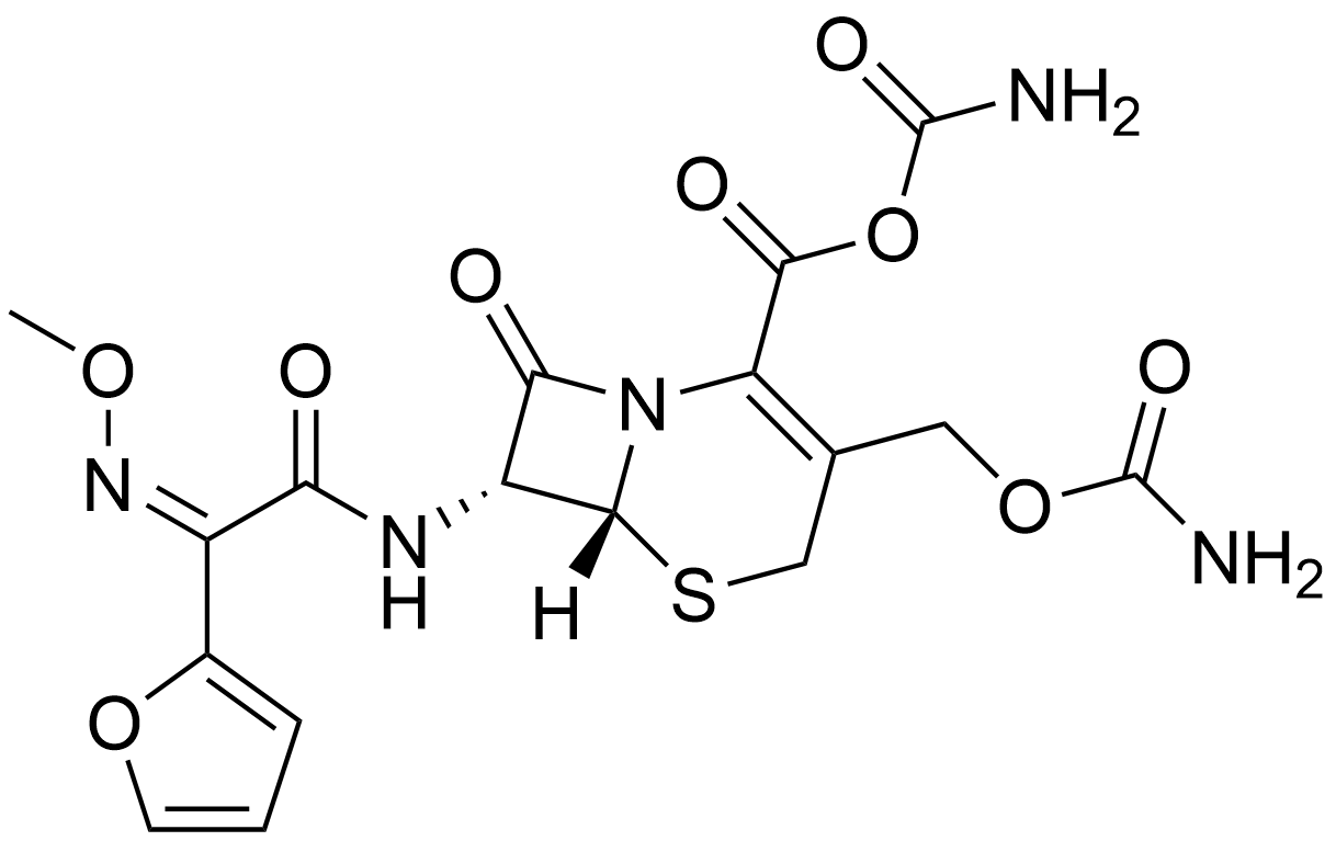 Synonyms: carbamic (6R,7R)-3-((carbamoyloxy)methyl)-7-((Z)-2-(furan-2-yl)-2-(methoxyimino)acetamido)-8-oxo-5-thia-1-azabicyclo[4.2.0]oct-2-ene-2-carboxylic anhydride