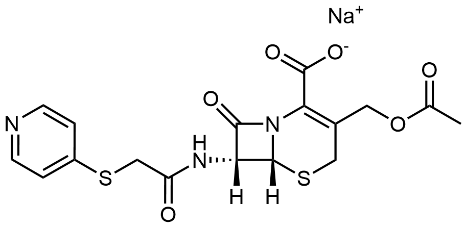 Synonyms: sodium (6R,7R)-3-(acetoxymethyl)-8-oxo-7-(2-(pyridin-4-ylthio)acetamido)-5-thia-1-azabicyclo[4.2.0]oct-2-ene-2-carboxylate