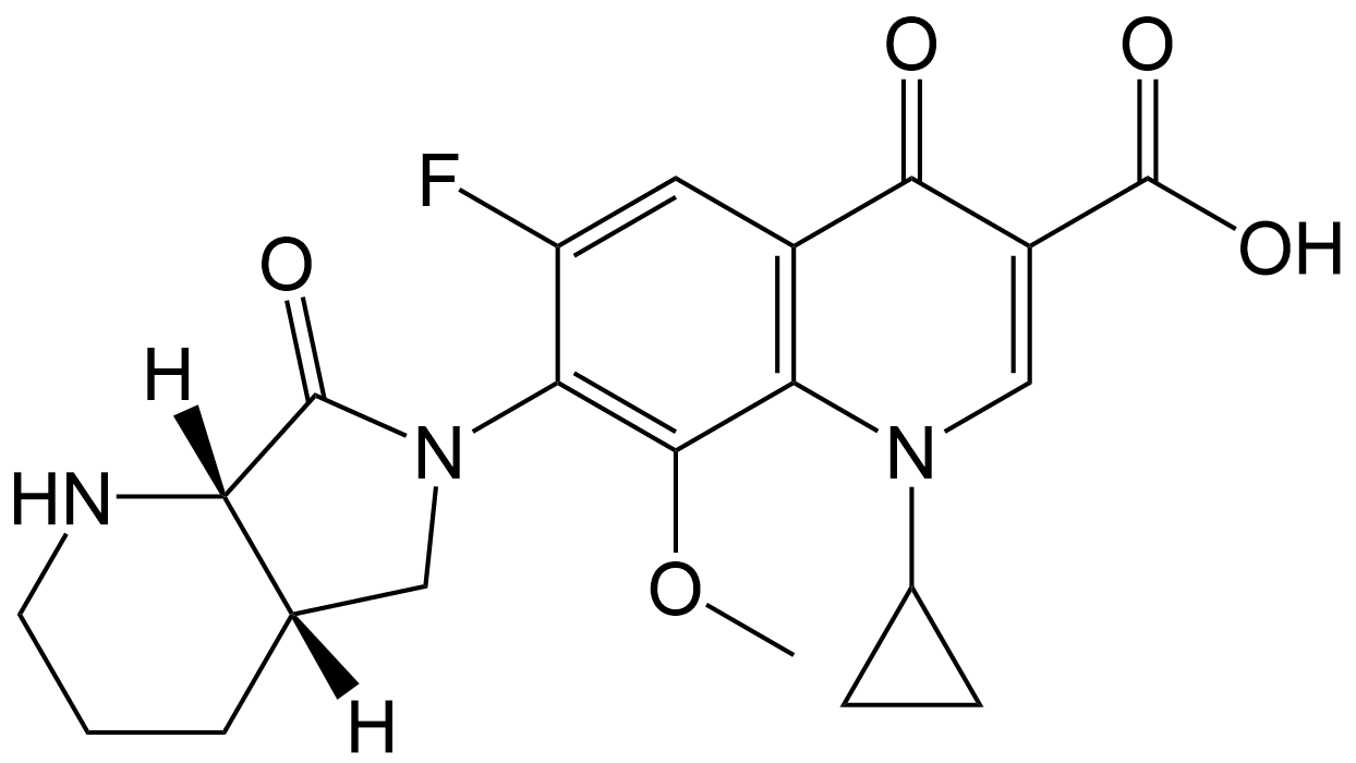Synonyms: 1-cyclopropyl-6-fluoro-8-methoxy-4-oxo-7-((4aS,7aS)-7-oxooctahydro-6H-pyrrolo[3,4-b]pyridin-6-yl)-1,4-dihydroquinoline-3-carboxylic acid