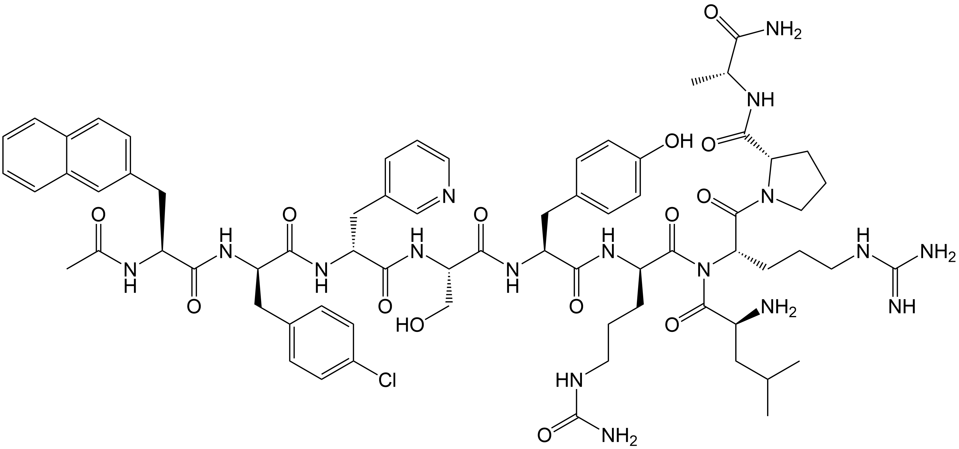 Synonyms: Ac-L-Nal1;(2S)-1-(((R)-2-((S)-2-((S)-2-((R)-2-((R)-2-((S)-2-acetamido-3-(naphthalen-2-yl)propanamido)-3-(4-chlorophenyl)propanamido)-3-(pyridin-3-yl)propanamido)-3-hydroxypropanamido)-3-(4-hydroxyphenyl)propanamido)-5-ureidopentanoyl)leucyl-L-arginyl)-N-(1-amino-1-oxopropan-2-yl)pyrrolidine-2-carboxamide