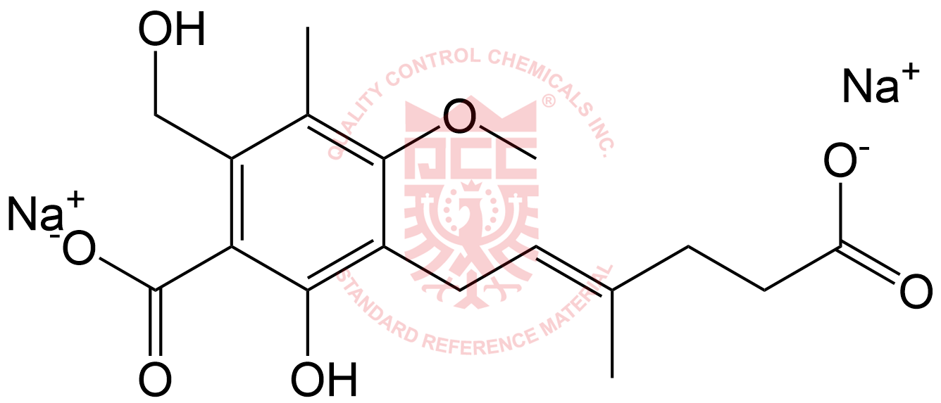 Synonyms: sodium (E)-3-(5-carboxylato-3-methylpent-2-en-1-yl)-2-hydroxy-6-(hydroxymethyl)-4-methoxy-5-methylbenzoate