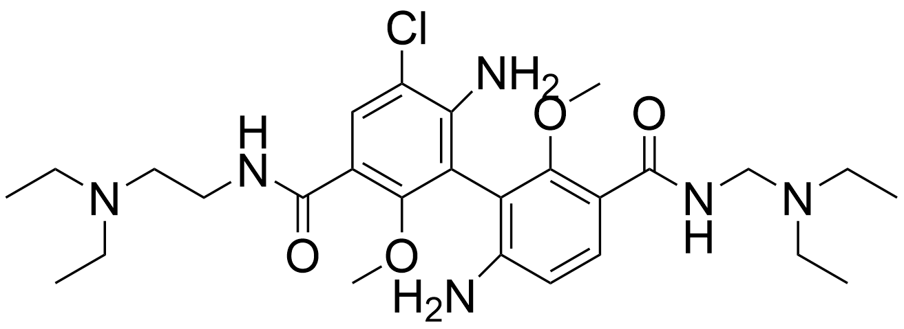 Synonyms: 6,6'-diamino-5-chloro-N3-(2-(diethylamino)ethyl)-N3'-((diethylamino)methyl)-2,2'-dimethoxy-[1,1'-biphenyl]-3,3'-dicarboxamide