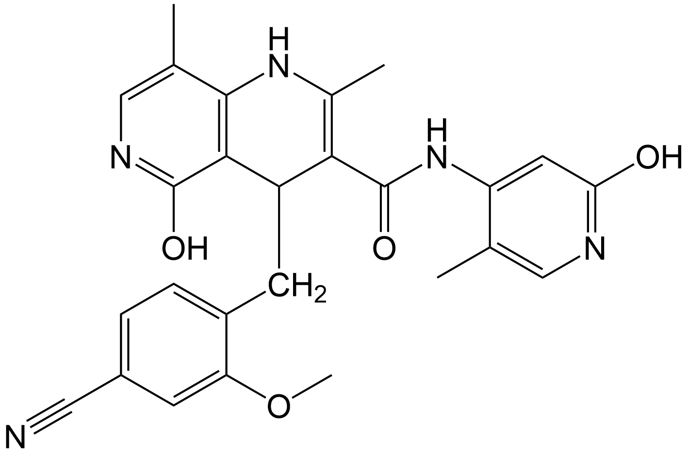Synonyms: 4-(4-cyano-2-methoxybenzyl)-5-hydroxy-N-(2-hydroxy-5-methylpyridin-4-yl)-2,8-dimethyl-1,4-dihydro-1,6-naphthyridine-3-carboxamide