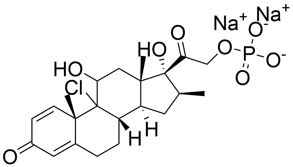 Synonyms: sodium 2-((8S,10S,13S,14S,16S,17R)-9-chloro-11,17-dihydroxy-10,13,16-trimethyl-3-oxo-6,7,8,9,10,11,12,13,14,15,16,17-dodecahydro-3H-cyclopenta[a]phenanthren-17-yl)-2-oxoethyl phosphate