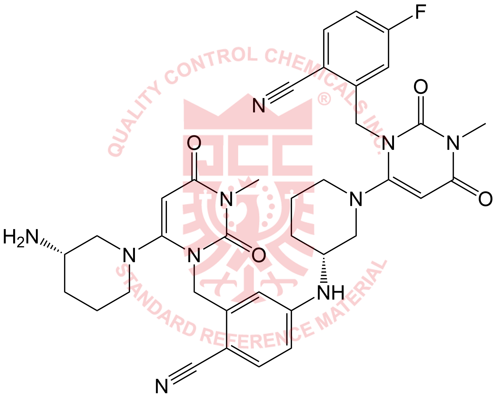 Synonyms: 2-((6-((S)-3-aminopiperidin-1-yl)-3-methyl-2,4-dioxo-3,4-dihydropyrimidin-1(2H)-yl)methyl)-4-(((R)-1-(3-(2-cyano-5-fluorobenzyl)-1-methyl-2,6-dioxo-1,2,3,6-tetrahydropyrimidin-4-yl)piperidin-3-yl)amino)benzonitrile