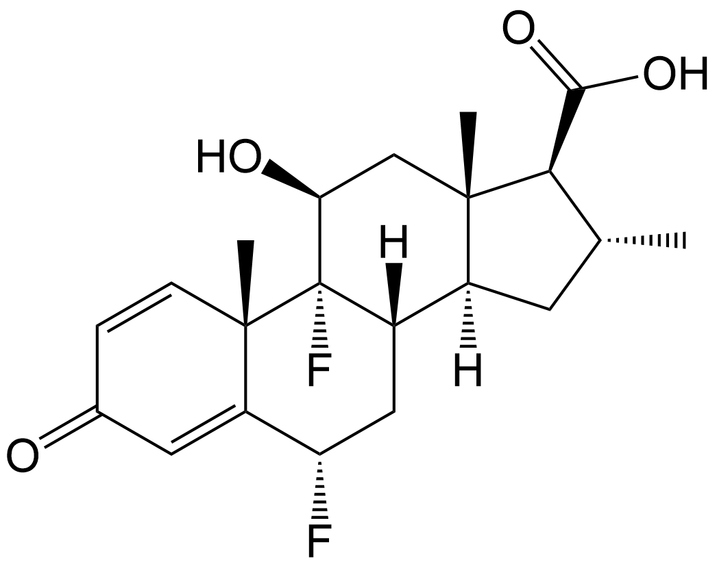 Synonyms: (6S,8S,9R,10S,11S,13S,14S,16R,17S)-6,9-difluoro-11-hydroxy-10,13,16-trimethyl-3-oxo-6,7,8,9,10,11,12,13,14,15,16,17-dodecahydro-3H-cyclopenta[a]phenanthrene-17-carboxylic acid