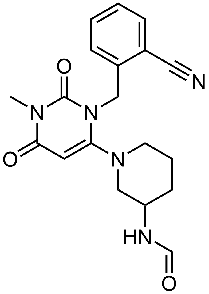 Synonyms: N-(1-(3-(2-cyanobenzyl)-1-methyl-2,6-dioxo-1,2,3,6-tetrahydropyrimidin-4-yl)piperidin-3-yl)formamide