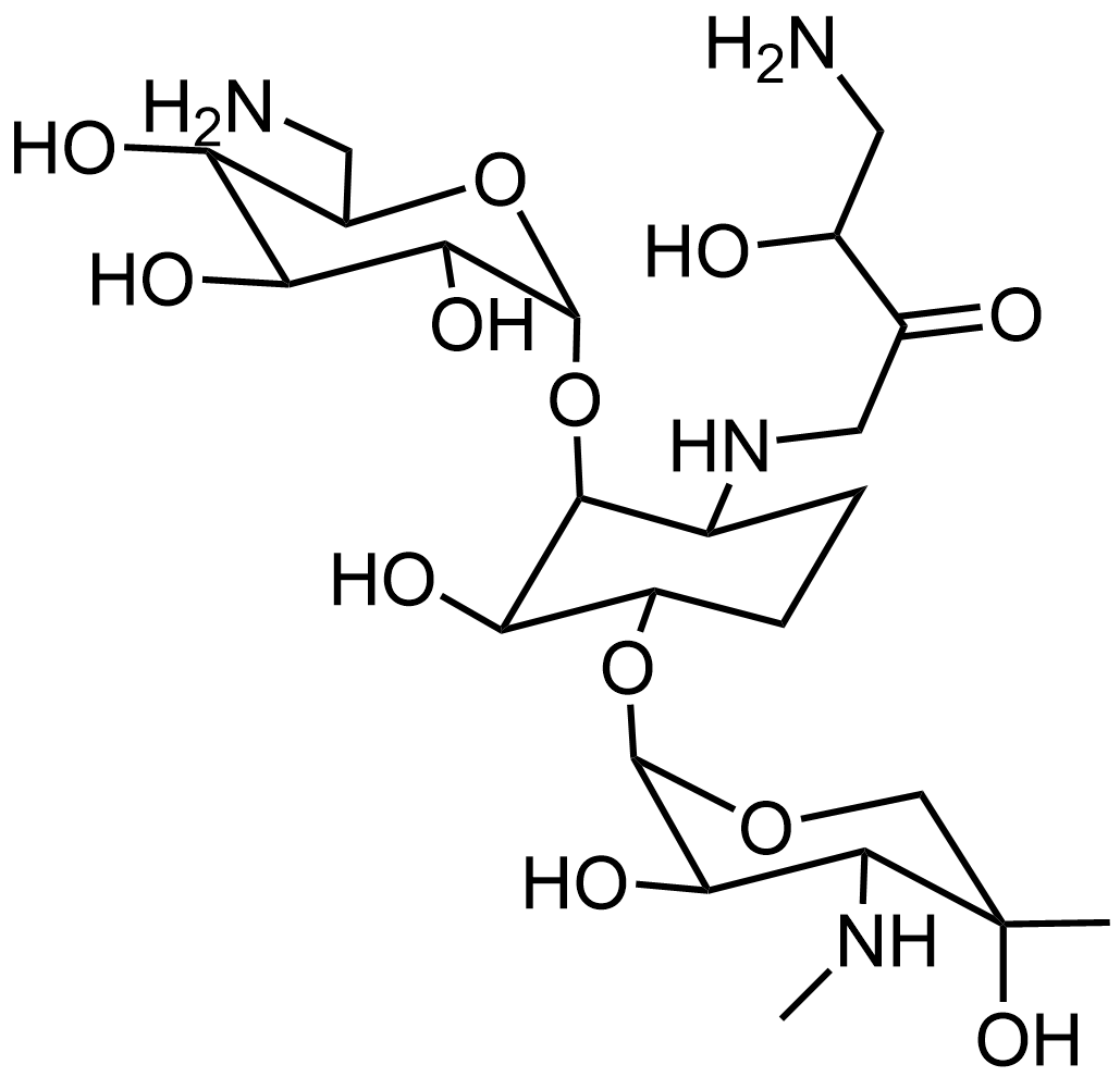 Synonyms: 4-amino-1-(((1S,2S,3R,4S)-2-(((2R,3R,4S,5S,6R)-6-(aminomethyl)-3,4,5-trihydroxytetrahydro-2H-pyran-2-yl)oxy)-4-(((2R,3R,4R,5R)-3,5-dihydroxy-5-methyl-4-(methylamino)tetrahydro-2H-pyran-2-yl)oxy)-3-hydroxycyclohexyl)amino)-3-hydroxybutan-2-one