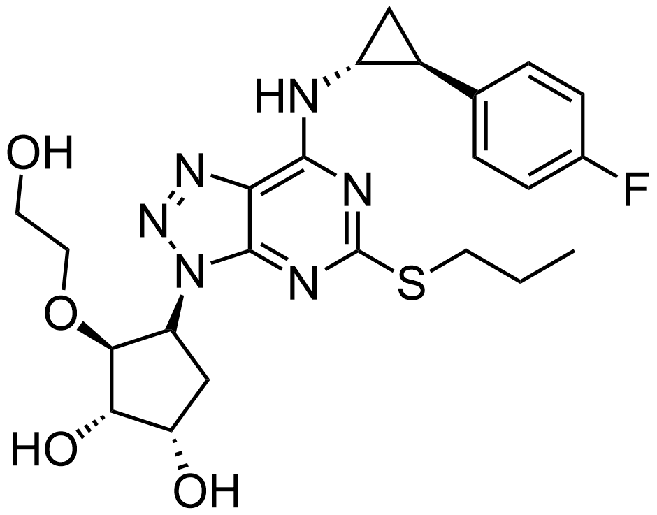 Synonyms: (1S,2S,3S,4R)-4-(7-(((1R,2S)-2-(4-fluorophenyl)cyclopropyl)amino)-5-(propylthio)-3H-[1,2,3]triazolo[4,5-d]pyrimidin-3-yl)-3-(2-hydroxyethoxy)cyclopentane-1,2-diol