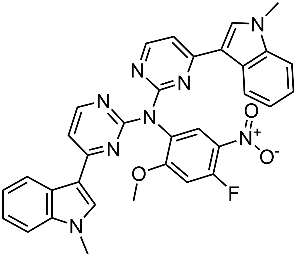 Synonyms: N-(4-fluoro-2-methoxy-5-nitrophenyl)-4-(1-methyl-1H-indol-3-yl)-N-(4-(1-methyl-1H-indol-3-yl)pyrimidin-2-yl)pyrimidin-2-amine