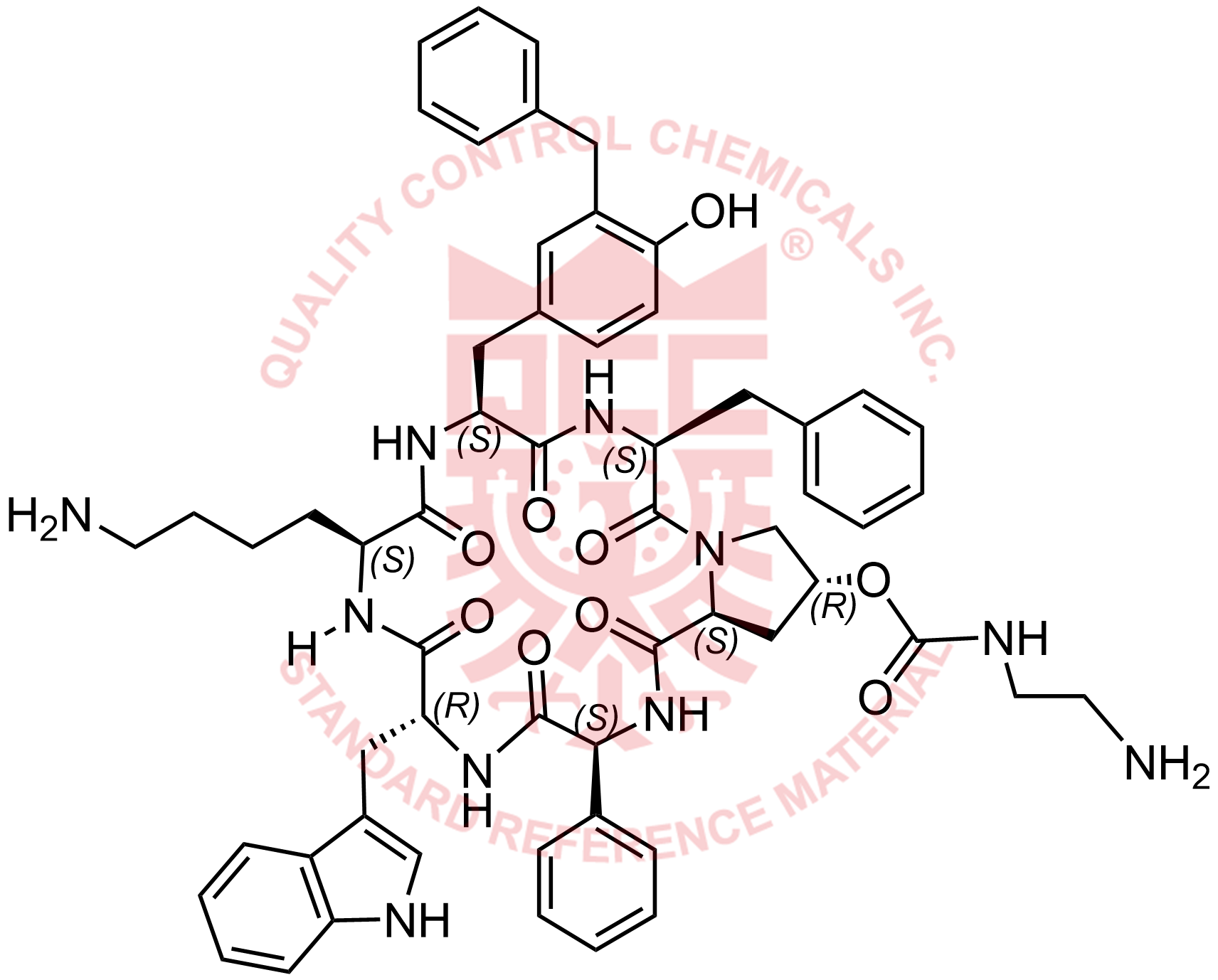 Synonyms: (3S,6R,9S,12S,15S,19R,20aS)-6-((1H-indol-3-yl)methyl)-9-(4-aminobutyl)-15-benzyl-12-(3-benzyl-4-hydroxybenzyl)-1,4,7,10,13,16-hexaoxo-3-phenylicosahydropyrrolo[1,2-a][1,4,7,10,13,16]hexaazacyclooctadecin-19-yl (2-aminoethyl)carbamate