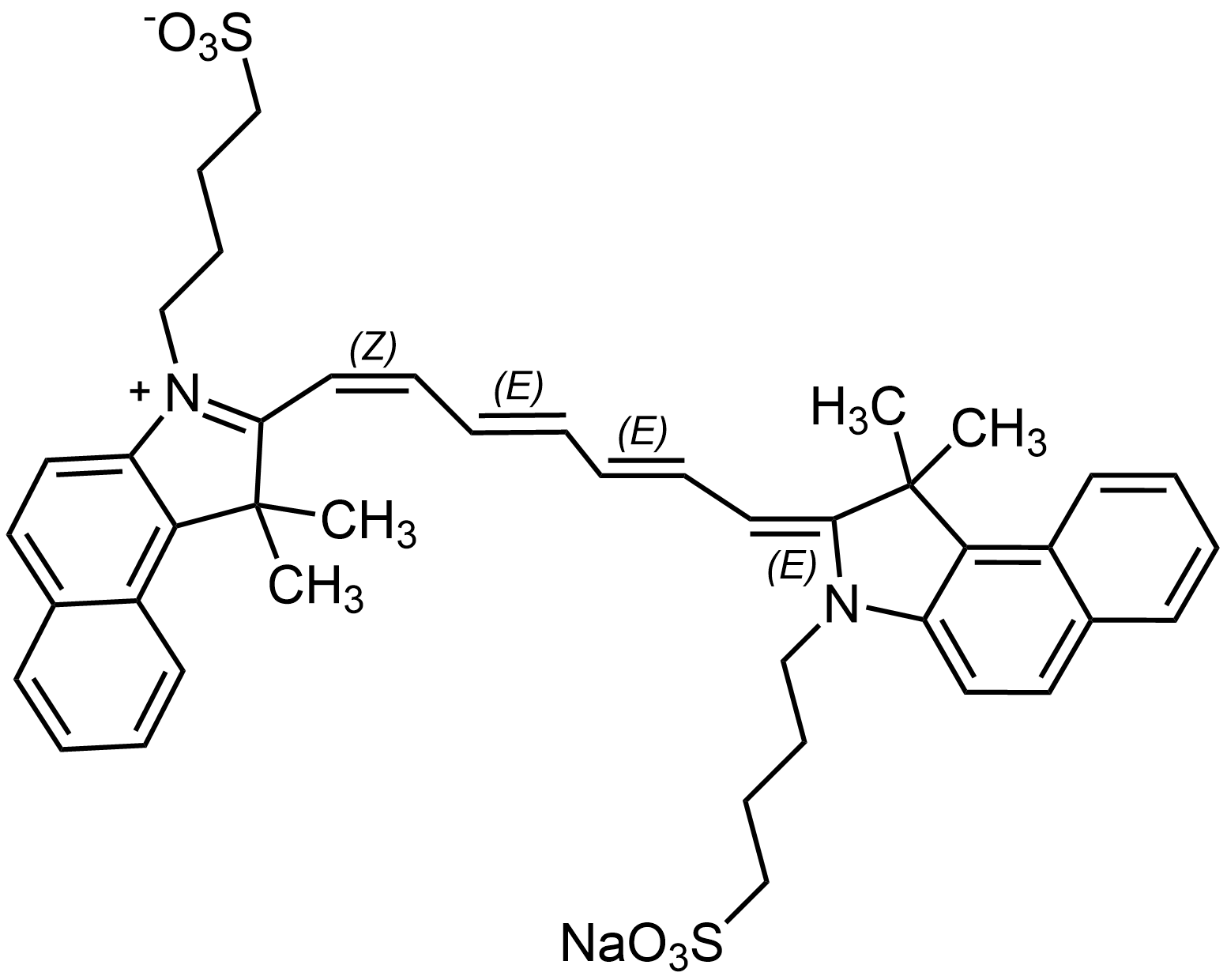 Synonyms: sodium 4-(2-((1Z,3E,5E,7E)-7-(1,1-dimethyl-3-(4-sulfonatobutyl)-1,3-dihydro-2H-benzo[e]indol-2-ylidene)hepta-1,3,5-trien-1-yl)-1,1-dimethyl-1H-benzo[e]indol-3-ium-3-yl)butane-1-sulfonate
