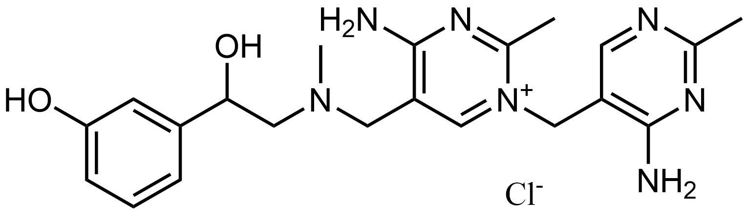 Synonyms: 4-amino-1-((4-amino-2-methylpyrimidin-5-yl)methyl)-5-(((2-hydroxy-2-(3-hydroxyphenyl)ethyl)(methyl)amino)methyl)-2-methylpyrimidin-1-ium chloride