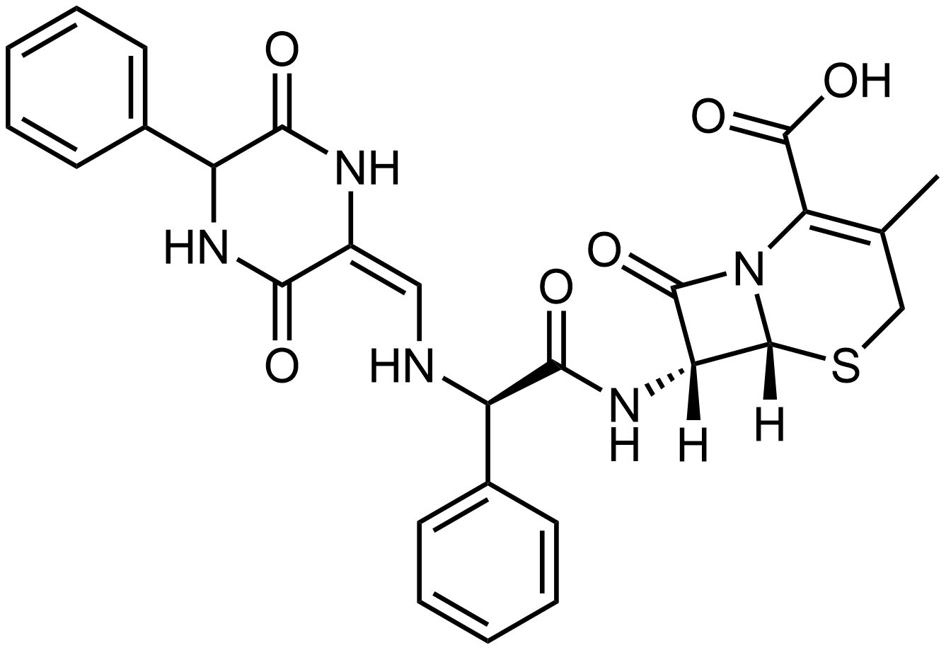 Synonyms: (6R,7R)-7-((2R)-2-(((E)-(3,6-dioxo-5-phenylpiperazin-2-ylidene)methyl)amino)-2-phenylacetamido)-3-methyl-8-oxo-5-thia-1-azabicyclo[4.2.0]oct-2-ene-2-carboxylic acid