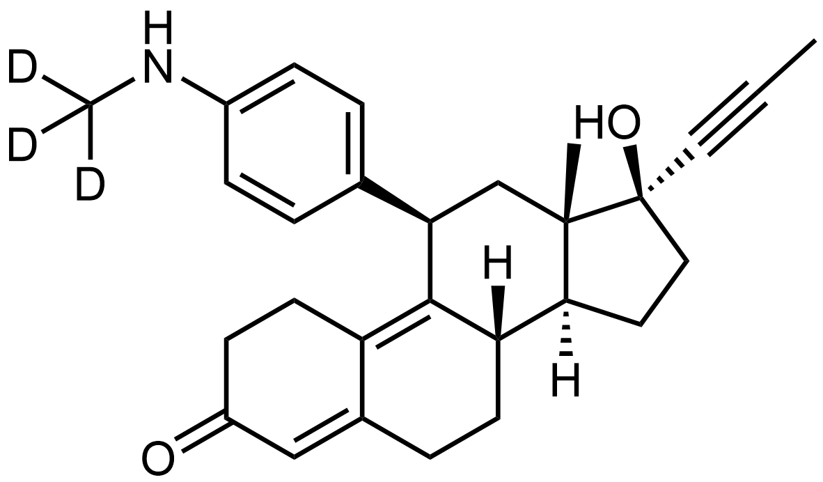 Synonyms: (8S,11R,13S,14S,17S)-17-hydroxy-13-methyl-11-(4-((methyl-d3)amino)phenyl)-17-(prop-1-yn-1-yl)-1,2,6,7,8,11,12,13,14,15,16,17-dodecahydro-3H-cyclopenta[a]phenanthren-3-one