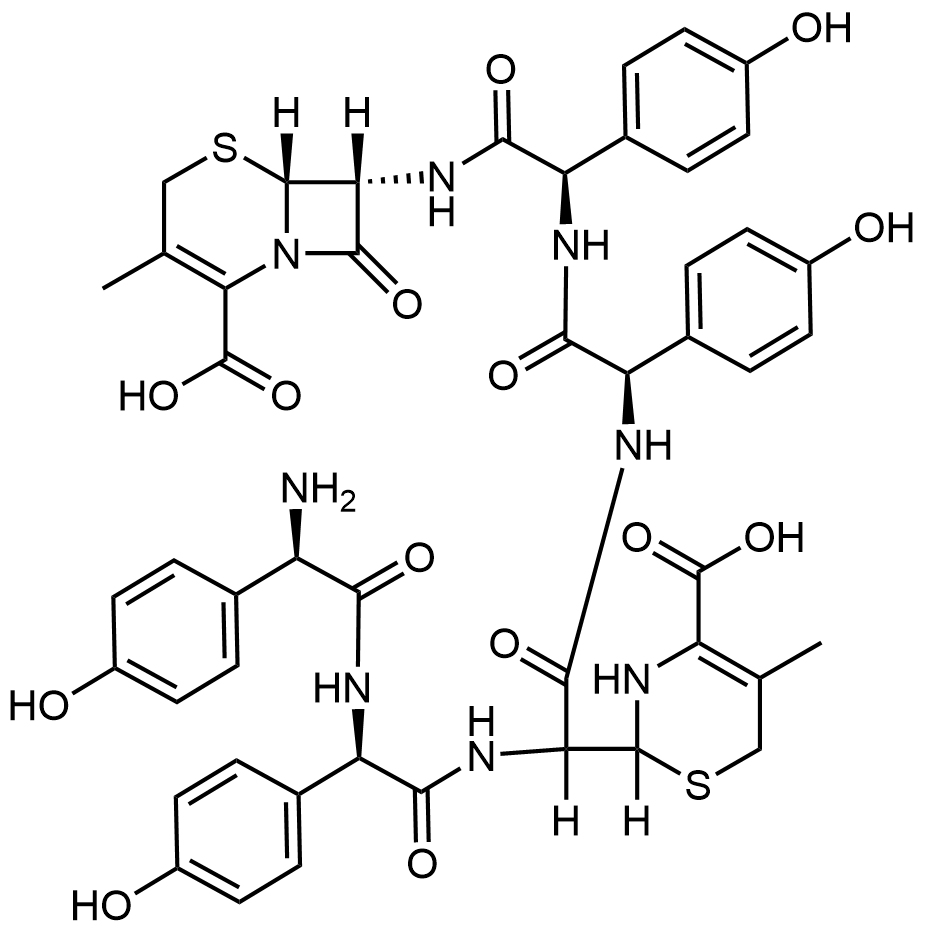 Synonyms: (6R,7R)-7-((R)-2-((6R,7R)-7-((R)-2-amino-2-(4-hydroxyphenyl)acetamido)-3-methyl-8-oxo-5-thia-1-azabicyclo[4.2.0]oct-2-ene-2-carboxamido)-2-(4-hydroxyphenyl)acetamido)-3-methyl-8-oxo-5-thia-1-azabicyclo[4.2.0]oct-2-ene-2-carboxylic acid compound with 2,2,2-trifluoroacetic acid (1:1)