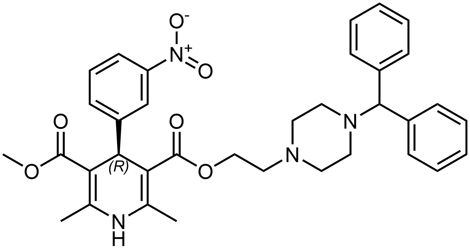Synonyms: 3-(2-(4-benzhydrylpiperazin-1-yl)ethyl) 5-methyl (R)-2,6-dimethyl-4-(3-nitrophenyl)-1,4-dihydropyridine-3,5-dicarboxylate