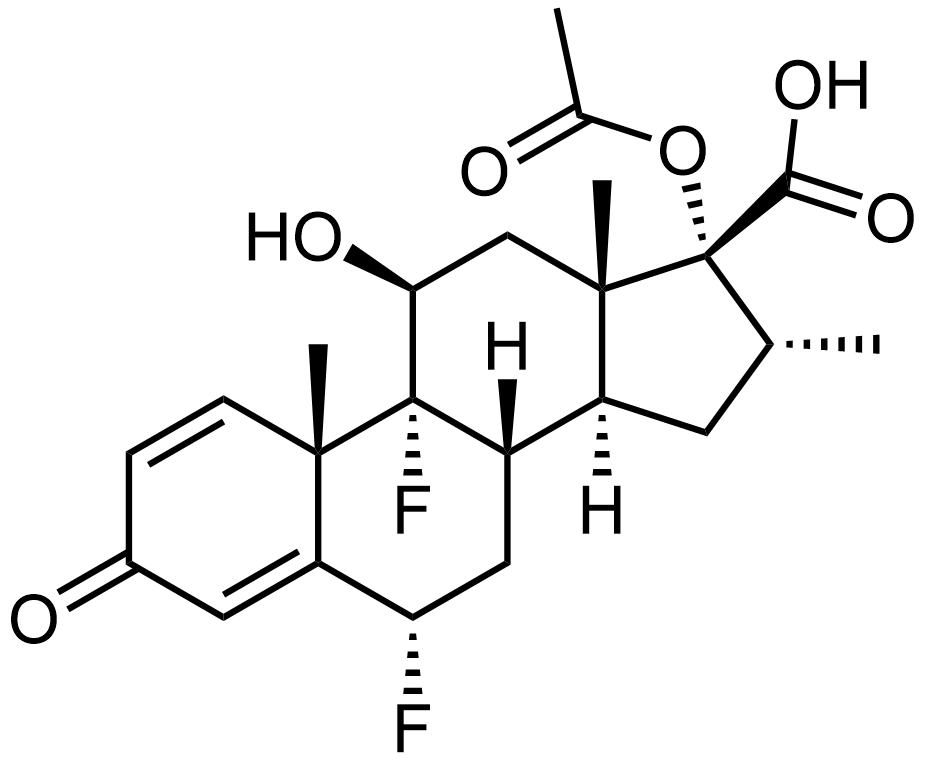 Synonyms: (6S,8S,9R,10S,11S,13S,14S,16R,17R)-17-acetoxy-6,9-difluoro-11-hydroxy-10,13,16-trimethyl-3-oxo-6,7,8,9,10,11,12,13,14,15,16,17-dodecahydro-3H-cyclopenta[a]phenanthrene-17-carboxylic acid