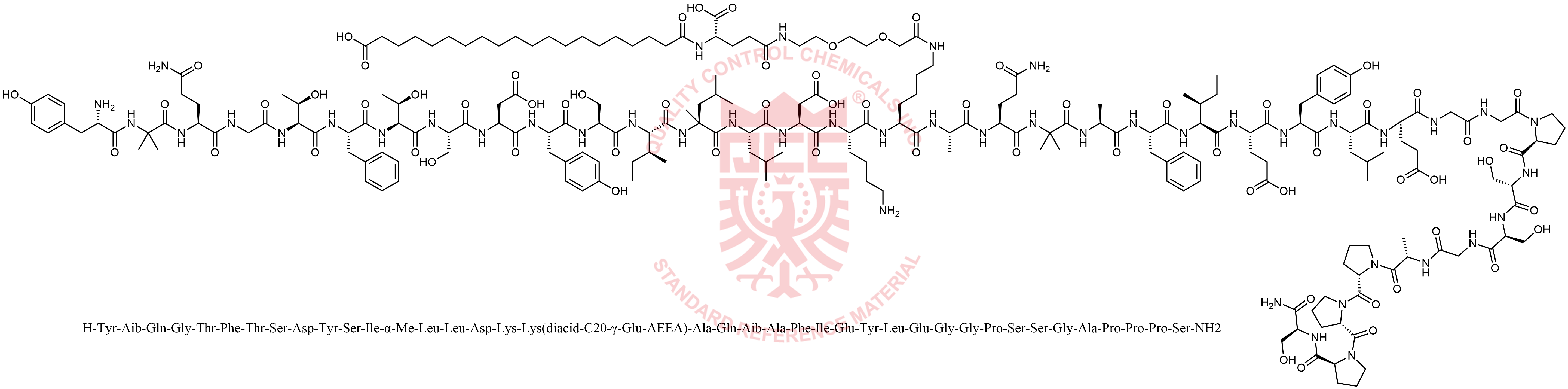 Synonyms: H-Tyr-Aib-Gln-Gly-Thr-Phe-Thr-Ser-Asp-Tyr-Ser-Ile-α-Me-Leu-Leu-Asp-Lys-Lys(diacid-C20-γ-Glu-AEEA)-Ala-Gln-Aib-Ala-Phe-Ile-Glu-Tyr-Leu-Glu-Gly-Gly-Pro-Ser-Ser-Gly-Ala-Pro-Pro-Pro-Ser-NH2