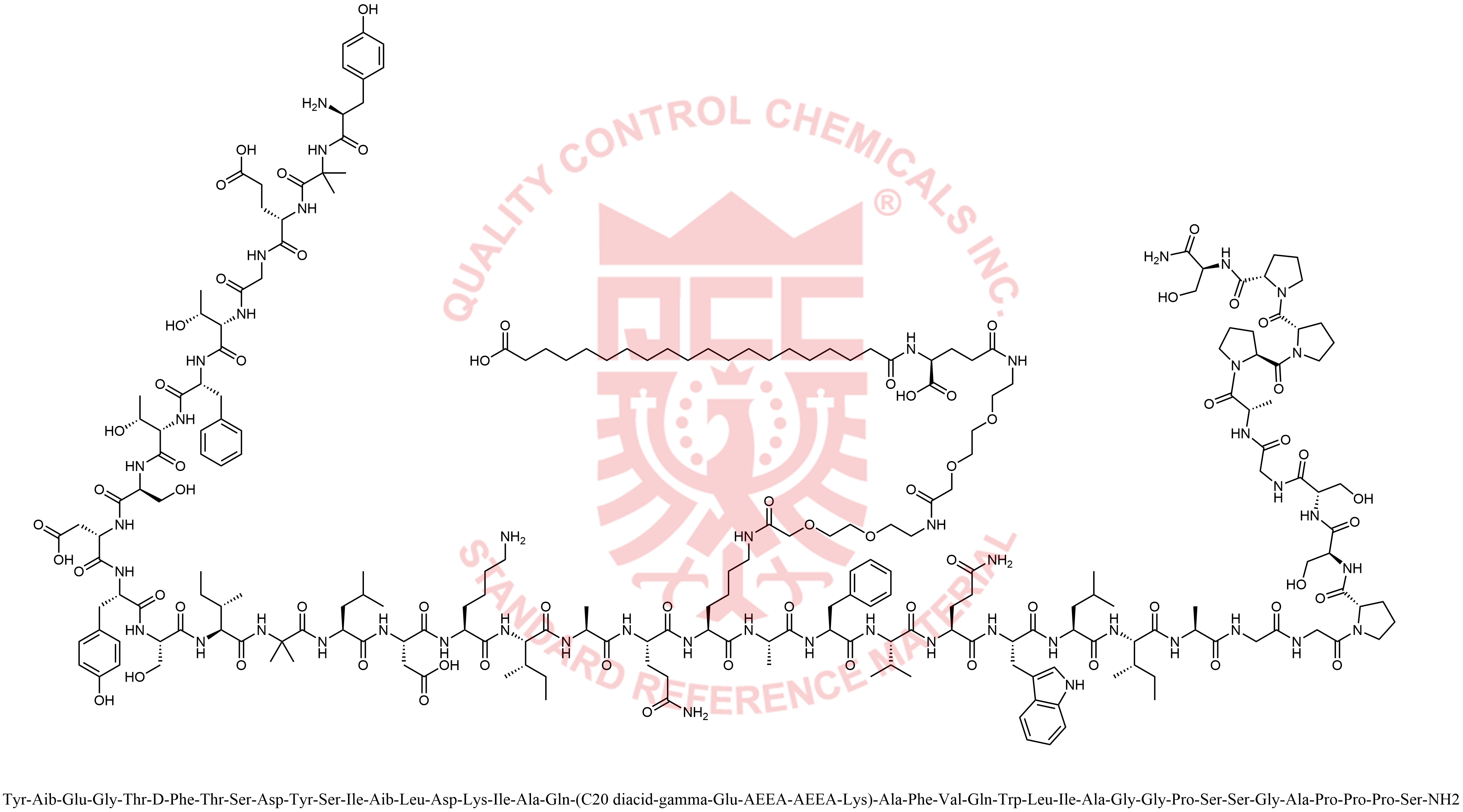 Synonyms: Tyr-Aib-Glu-Gly-Thr-D-Phe-Thr-Ser-Asp-Tyr-Ser-Ile-Aib-Leu-Asp-Lys-Ile-Ala-Gln-(C20 diacid-gamma-Glu-AEEA-AEEA-Lys)-Ala-Phe-Val-Gln-Trp-Leu-Ile-Ala-Gly-Gly-Pro-Ser-Ser-Gly-Ala-Pro-Pro-Pro-Ser-NH2