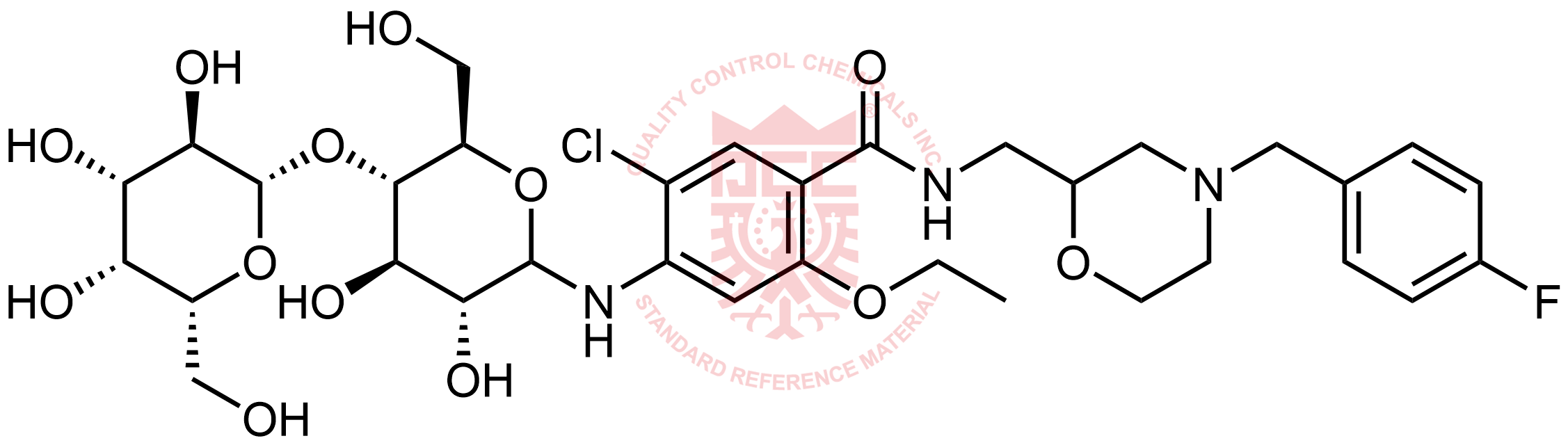 Synonyms: 5-chloro-4-(((3R,4R,5S,6R)-3,4-dihydroxy-6-(hydroxymethyl)-5-(((2S,3R,4S,5R,6R)-3,4,5-trihydroxy-6-(hydroxymethyl)tetrahydro-2H-pyran-2-yl)oxy)tetrahydro-2H-pyran-2-yl)amino)-2-ethoxy-N-((4-(4-fluorobenzyl)morpholin-2-yl)methyl)benzamide