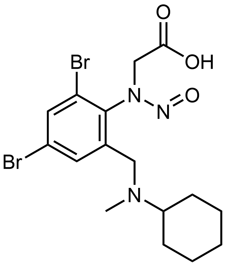Synonyms: N-(2,4-dibromo-6-((cyclohexyl(methyl)amino)methyl)phenyl)-N-nitrosoglycine