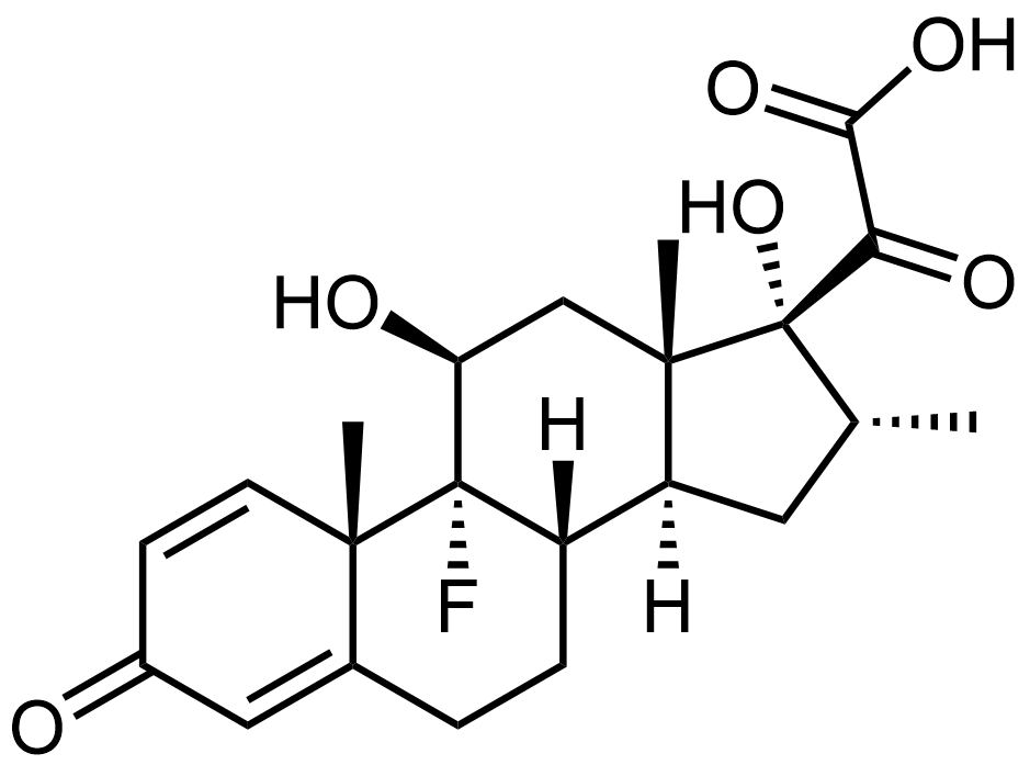 Synonyms: 2-((8S,9R,10S,11S,13S,14S,16R,17R)-9-fluoro-11,17-dihydroxy-10,13,16-trimethyl-3-oxo-6,7,8,9,10,11,12,13,14,15,16,17-dodecahydro-3H-cyclopenta[a]phenanthren-17-yl)-2-oxoacetic acid