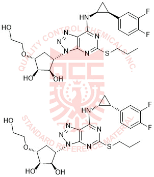 Synonyms: (1R,2R,3S,5R)-3-(7-(((1RS,2RS)-2-(3,4-difluorophenyl)cyclopropyl)amino)-5-(propylthio)-3H-[1,2,3]triazolo[4,5-d]pyrimidin-3-yl)-5-(2-hydroxyethoxy)cyclopentane-1,2-diol