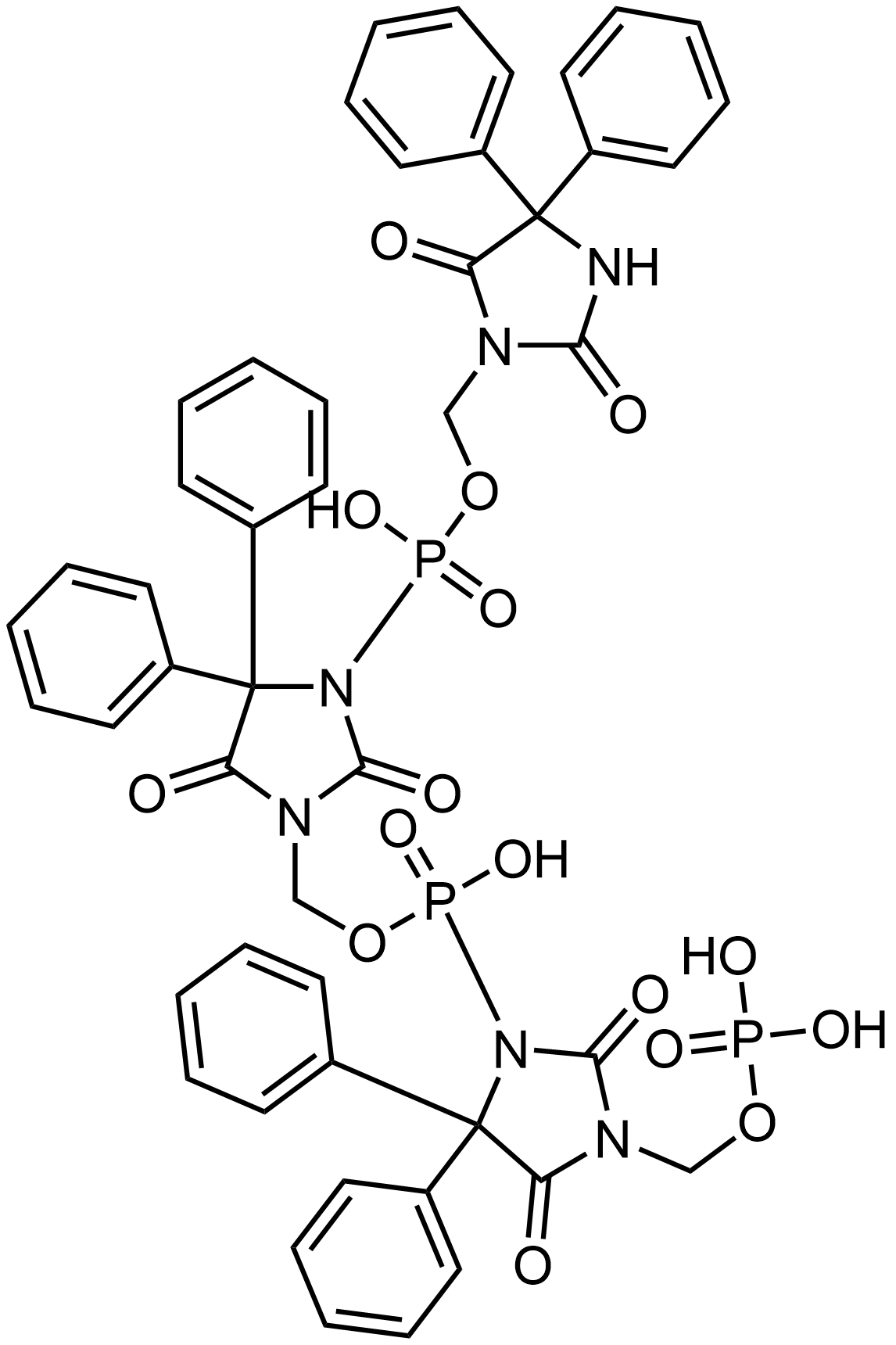 Synonyms: (3-(((3-(((2,5-dioxo-4,4-diphenylimidazolidin-1-yl)methoxy)(hydroxy)phosphoryl)-2,5-dioxo-4,4-diphenylimidazolidin-1-yl)methoxy)(hydroxy)phosphoryl)-2,5-dioxo-4,4-diphenylimidazolidin-1-yl)methyl dihydrogen phosphate