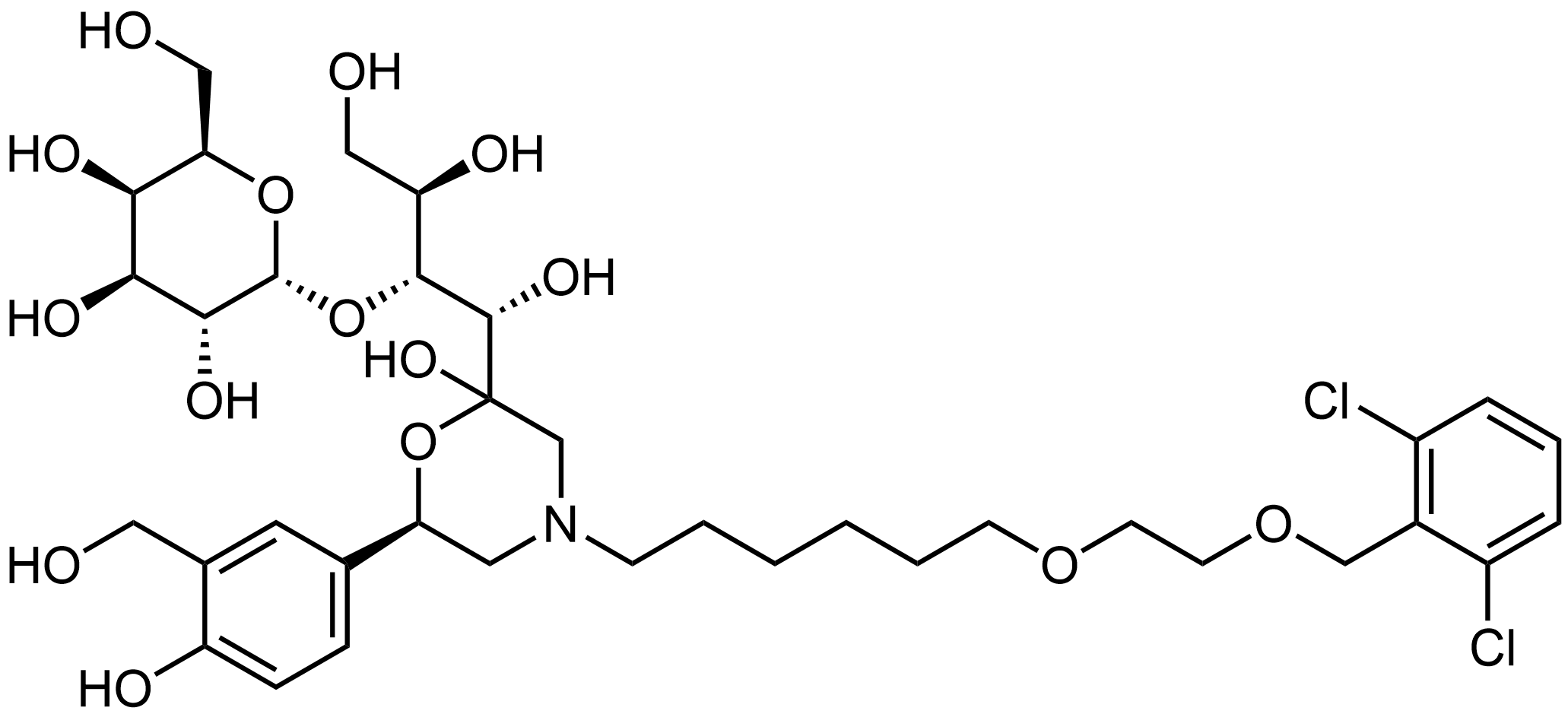 Synonyms: (2R,3R,4S,5R,6R)-2-(((1S,2R,3R)-1-((6R)-4-(6-(2-((2,6-dichlorobenzyl)oxy)ethoxy)hexyl)-2-hydroxy-6-(4-hydroxy-3-(hydroxymethyl)phenyl)morpholin-2-yl)-1,3,4-trihydroxybutan-2-yl)oxy)-6-(hydroxymethyl)tetrahydro-2H-pyran-3,4,5-triol