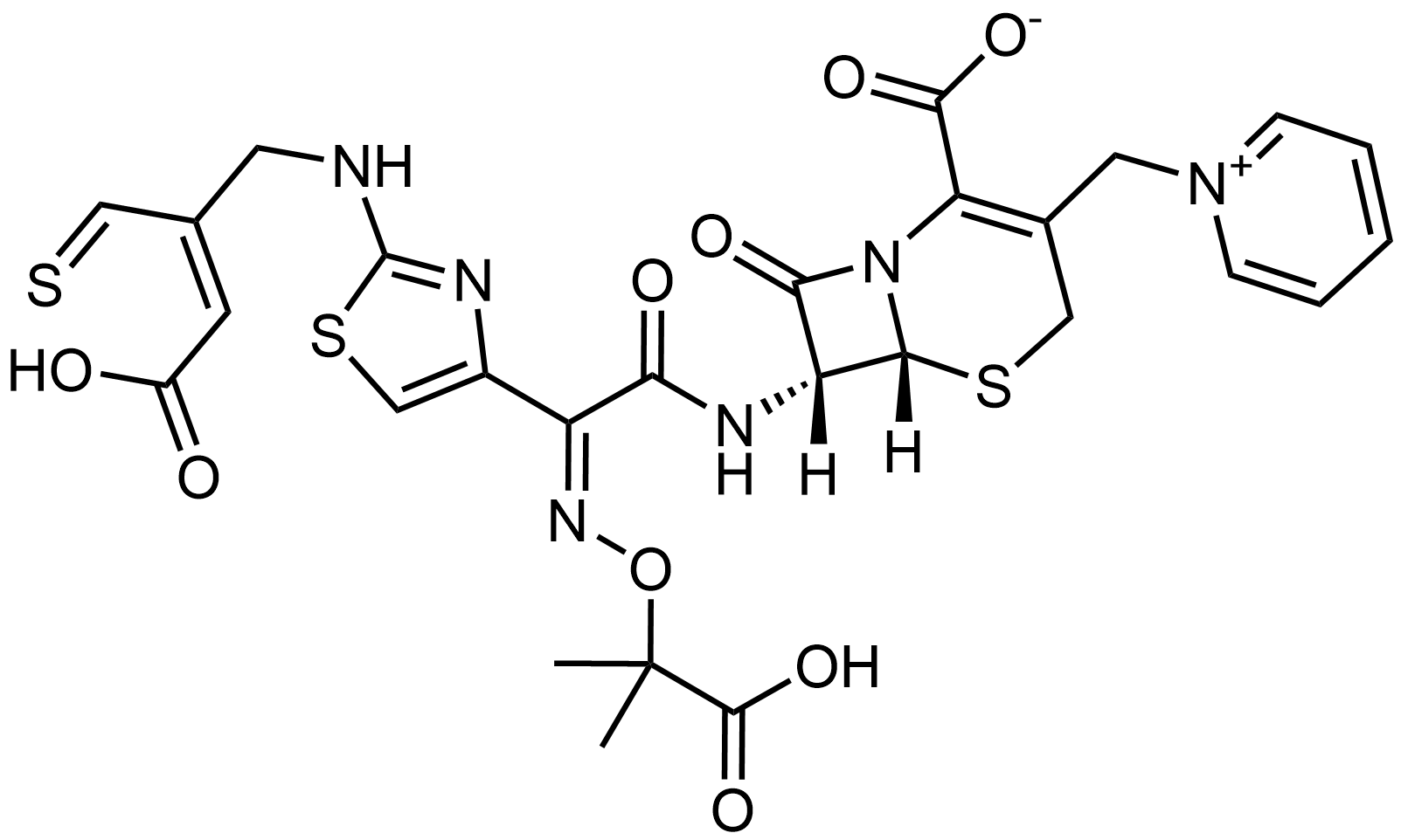 Synonyms: (6R,7R)-7-((Z)-2-(2-(((Z)-3-carboxy-2-thioformylallyl)amino)thiazol-4-yl)-2-(((2-carboxypropan-2-yl)oxy)imino)acetamido)-8-oxo-3-(pyridin-1-ium-1-ylmethyl)-5-thia-1-azabicyclo[4.2.0]oct-2-ene-2-carboxylate