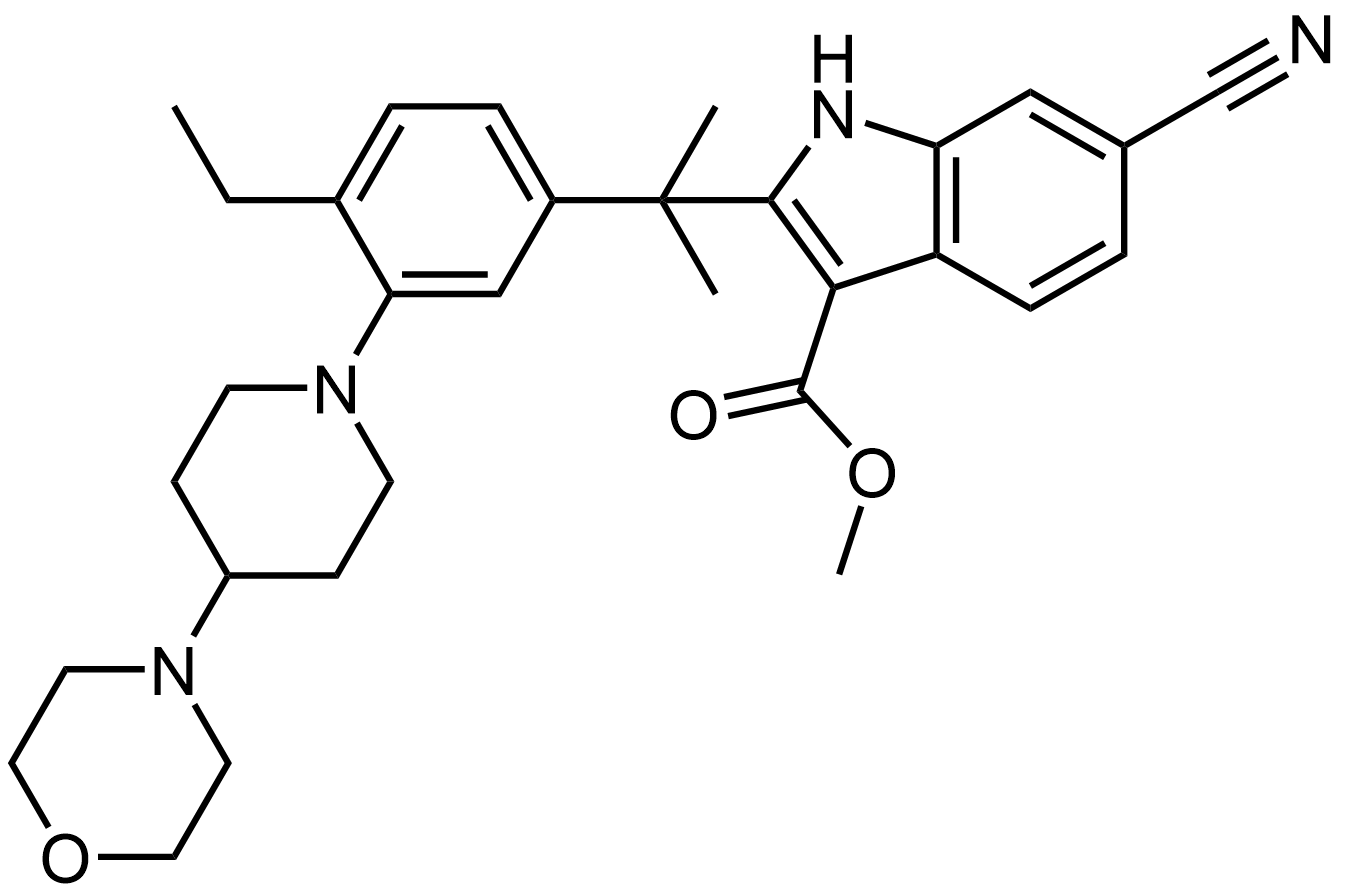 Synonyms: methyl 6-cyano-2-(2-(4-ethyl-3-(4-morpholinopiperidin-1-yl)phenyl)propan-2-yl)-1H-indole-3-carboxylate