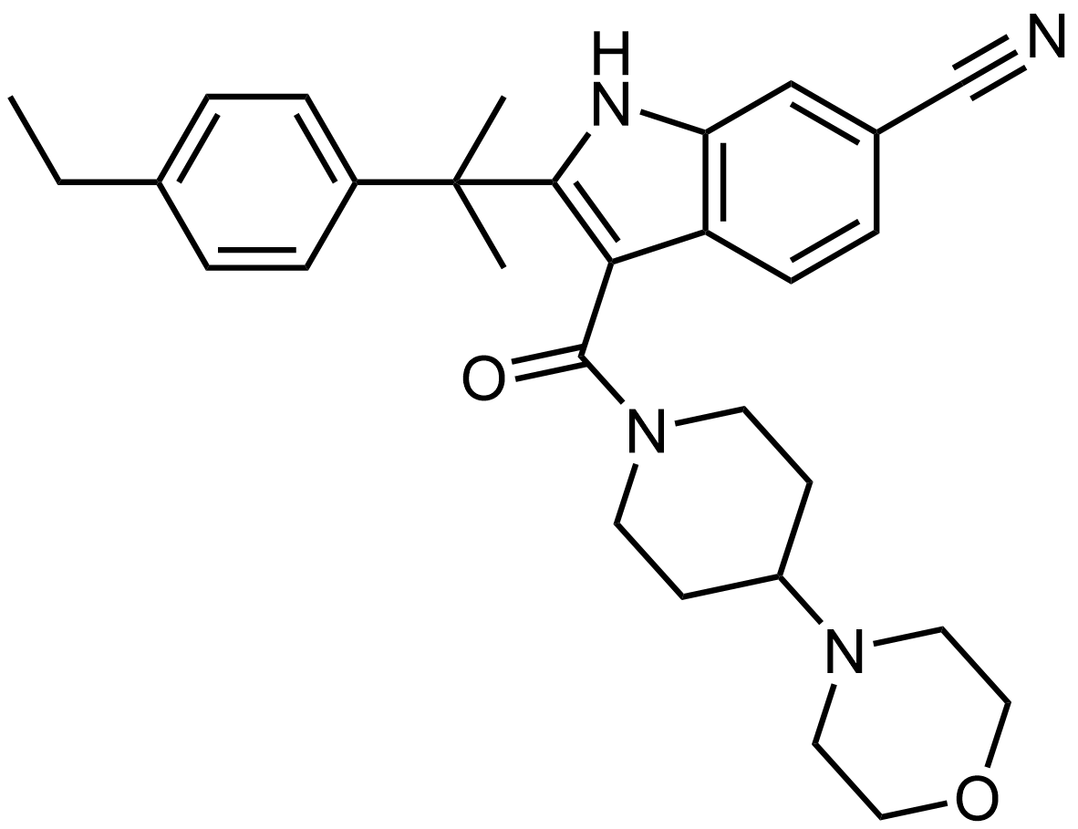 Synonyms: 2-(2-(4-ethylphenyl)propan-2-yl)-3-(4-morpholinopiperidine-1-carbonyl)-1H-indole-6-carbonitrile