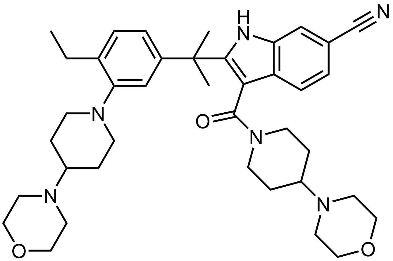 Synonyms: 2-(2-(4-ethyl-3-(4-morpholinopiperidin-1-yl)phenyl)propan-2-yl)-3-(4-morpholinopiperidine-1-carbonyl)-1H-indole-6-carbonitrile