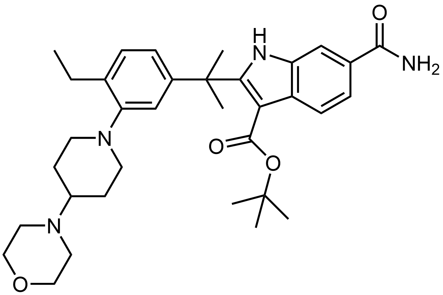 Synonyms: tert-butyl 6-carbamoyl-2-(2-(4-ethyl-3-(4-morpholinopiperidin-1-yl)phenyl)propan-2-yl)-1H-indole-3-carboxylate