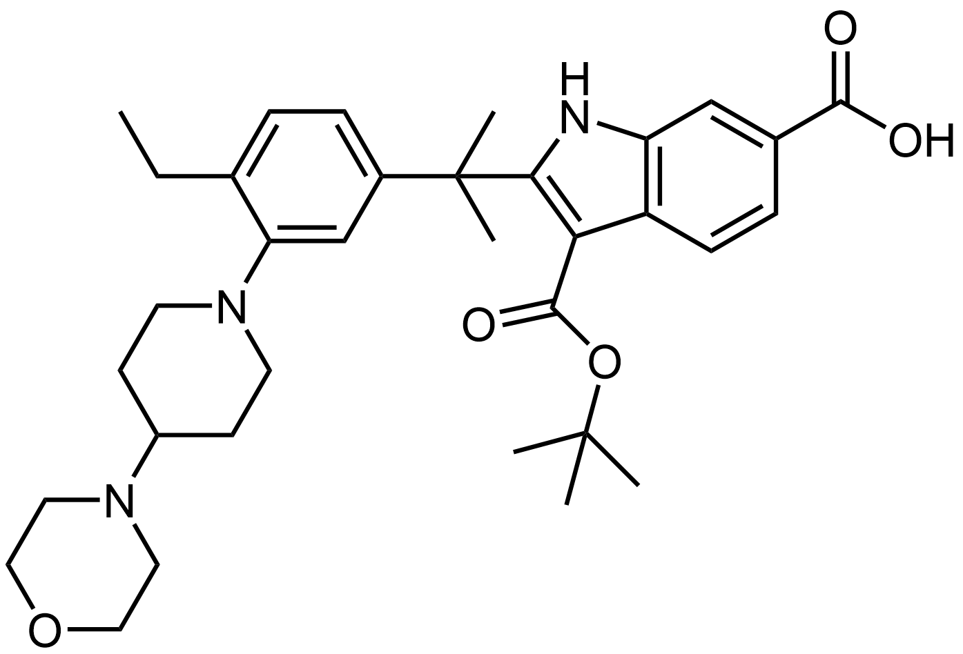 Synonyms: 3-(tert-butoxycarbonyl)-2-(2-(4-ethyl-3-(4-morpholinopiperidin-1-yl)phenyl)propan-2-yl)-1H-indole-6-carboxylic acid